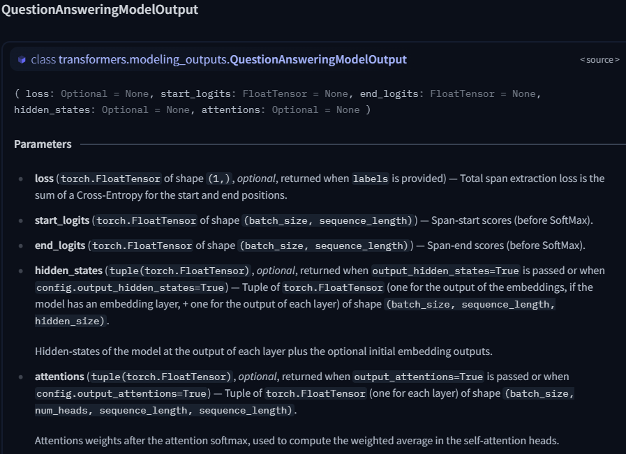 그래 QuestionAnsweringModelOutput 니가 반환 값이구나