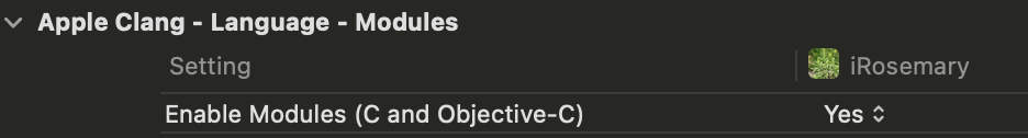 레거시 C 모듈을 objective c 에서 사용하고 있었는데, Xcode를 업데이트 하면서 이런 오류가 발생하기 시작했다. 직역해보자면 B라는 곳에서 A 모듈에 대한 헤더포함(include)이 중복되었다 정도로 읽힌다. 맞다. 내가 사용하던 레거시 C모듈은 수많은 C 함수를 구조체에 함수 포인터 목록으로 만들어주는 작업을 전처리기만으로 수행한다. 그러다보니, 한 헤더에서 A.h를 여러번 include 하여 사용하고 있다. (이거 하느라 삽질 엄청한 과거의 기록이 새록새록) 그런데 왜 갑자기 이런 오류를 발생시켰을까? (예전까지 잘 사용했었음) 가장 먼저 찾아낸 것은 이 옵션이다. 모듈이 뭔지는 모르겠으나 C나 Objective C 코드도 모듈로 사용하게 한다고 한다. (이 옵션을 끄면 빌드문제는 해결됨..
