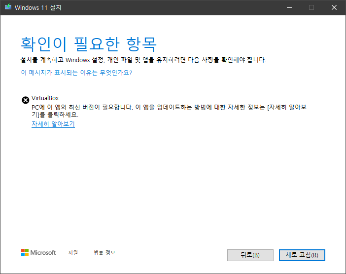 요즘 PC에 VirtualBox가 설치되어 있는 경우가 적지 않을 것인데, 아래처럼 VirtualBox 업데이트를 진행하고 설치하라는 메시지가 출력됩니다. ※ 특히 저의 경우 VirtualBox가 두개 설치되어 있다고 화면에 나오더군요. 내용을 조금 읽어보니, VirtualBox가 Windows 11에서 동작하는데 치명적인 문제가 있으니, 이 문제를 수정한 버전의 VirtualBox를 설치하라는 내용입니다. 해서 우선 VirtualBox를 최신으로 업데이트 해보았으니, 아쉽게도 문제가 아직 해결되지 않은 모양입니다. 그래서 VirtualBox를 삭제하고 다시 시도 했으나, 문제는 동일합니다. (어딘가에 VirtualBox 설치본이 남은걸로 인식해서 넘어갈 수가 없습니다.) 그래서 조금 복잡하지만, Reg..